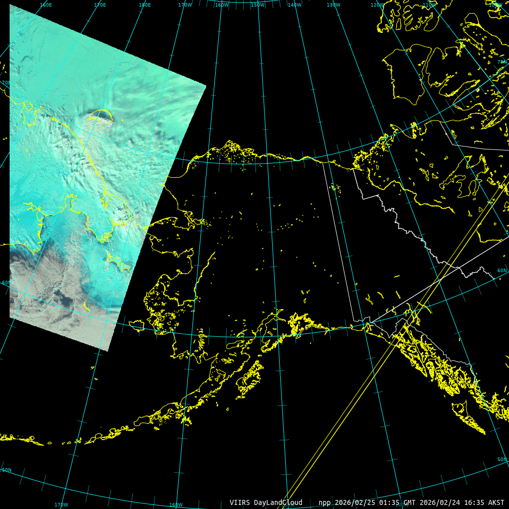 | MP4 WebM Gif Small Gif DNB - Polar From: 2026/02/24 23:20 To: 2026/03/02 23:06 | MP4 WebM Gif Small Gif VSCD From: 2026/02/24 22:30 To: 2026/03/02 23:07 | MP4 WebM Gif Small Gif VIIRS I04 Polar From: 2026/02/24 23:20 To: 2026/03/02 23:06 | MP4 WebM Gif Small Gif VIIRS I05 Polar From: 2026/02/24 23:20 To: 2026/03/02 23:06 | MP4 WebM Gif Small Gif Micro-Physics From: 2026/02/24 22:30 To: 2026/03/02 23:06 |